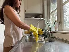 dishes pile up while horny wife bends for kitchen doggystyle