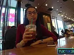 😍 sexy thai milf from mall now rides cock hard!