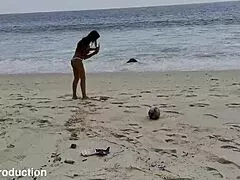 monika fox strolls beach in white panties and burgundy top then swims carefree